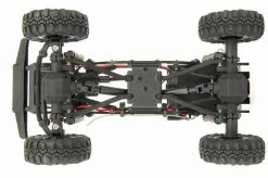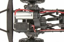 FORWARD-MOUNTED MOTOR and DIVORCED TRANSFER CASE: The forward-mounted motor puts the heaviest part of the rig over the front tires. This forward-bias weight keeps the front tires on the ground and provides better front grip during ascents. The divorced transfer case provides a lower center of gravity in a compact space. Not only does this combination perform well, it also adds scale realism, allowing for plenty of room should you want to add a custom body or interior.