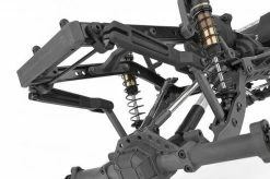 - To increase performance we’ve included several Factory Team parts. Our bronze shocks (4), steel wheel hexes (4), machined metal pivot balls, (30), and lower high-clearance front links (2).